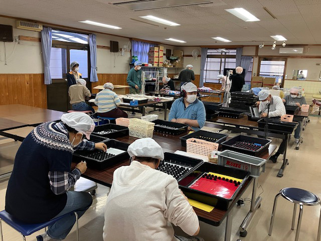 | 施設の紹介文 | 【活動内容】 ・自主製品の制作や下請作業、アート活動、余暇活動など、様々な活動を行っています。 【作業内容】 ・自主製品制作:手染め製品の制作(デザイン画作成含む) ・下請作業:トイレットペーパー類の袋詰め、車部品の組立、紙ひも巻きなど 【支援の特徴】 ・利用者一人ひとりの特性を理解し、利用者全員が作業に取り組めるよう、丁寧な支援を心掛けています。 【PRポイント】 ・明るくて元気で、笑顔があふれる事業所です。 ・年に2回、講師を招いたアート活動を実施。日常的にも製品作りに活かす創作活動を楽しんでいます。 ・社会見学や外食訓練、料理教室、スポーツレクリエーションなど、充実した余暇活動を行っています。 |
